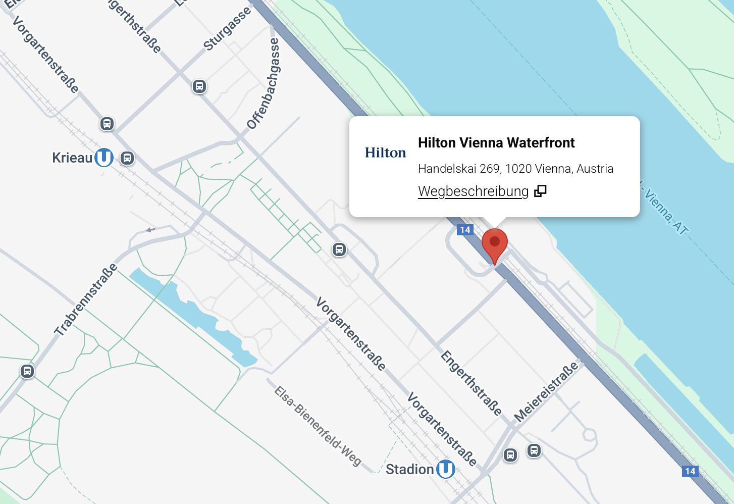 Die proxtalks Wien finden im eindrucksvollen Hilton Vienna Waterfront statt – einer Location, die modernes Design, historische Architektur und eine außergewöhnliche Lage vereint.